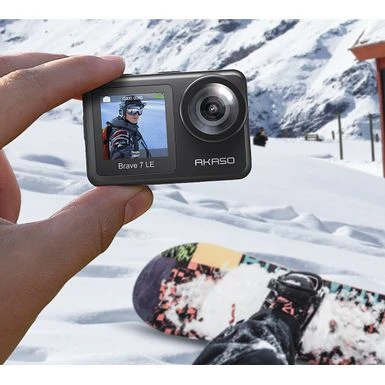 The AKASO Brave 7 LE brings the revolutionary dual-screen design. The rear screen for you to see the world; the front screen to frame yourself. Just get yourself in the front screen and say Cheese. From the mountain trail to rough sea, you can always get the stable movies thanks to the upgraded EIS system.