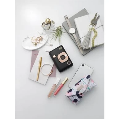 Capture photos with embedded sound to relive cherished moments using this Fujifilm instax mini LiPlay film camera. The LCD screen lets you preview each photo and add filters for easy customization while LiPlay lets you capture group photos conveniently using your smartphone as the shutter button. This Fujifilm instax mini LiPlay film camera features a 12-second printing time for quick film development. 6355187