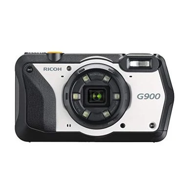 The Ricoh G900. This heavy-duty digital camera is designed to be highly resistant to water, dust, shock and chemicals, making it ideal for use at demanding worksites subjected to water, rain, dust and dirt, and in industries such as construction, disaster relief and healthcare. It is designed to be approximately 26% more compact than its G800 predecessor, despite an enhanced Shock-Resistant performance to withstand a fall from 2. 1 meters. * its downsized body improves portability, its accessible button positioning enhances operability, and its flawlessly contoured grip ensures a firm hold on the camera. It also inherits the wide neck strap of its predecessor, which enables two-point, cross-shoulder suspension to enhance the ease of carrying and handling at worksites.
