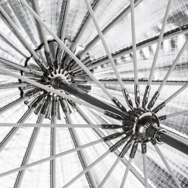 Umbrellas are like large to giant sized parabolic reflector. Parabolas are technically ‘conic sections’. Take a perfect cone; slice through it down to the base, the edge of the cut is a parabola. This shape is more efficient at feathering light effects. The important point of the physics of photographically regarding parabolas is they have a focal point. Place light aimed at the focal point and it bounces off the entire umbrella surface at different angles, but when it leaves the umbrella, all the rays are parallel. The more the curve of the bowl conforms to a parabolic sphere, the greater the efficiency of the light power emanating from the umbrella. That is where this version of the Glow Deep Umbrella, shines.