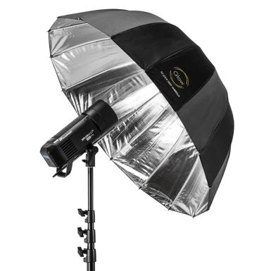 This midsize edition of the Deep Umbrella is especially suitable for everything from fashion to portraiture, illuminating head and shoulders, with smooth, and nonetheless, exciting light. Beaded silver makes it easy to achieve magnificent specular highlights, brings out sharp details, and provides the most brilliant indirect lighting, along with soft shadow definition. Perfect for maximum light output, greater reach, creating spectacular contrasts. With much attention to minutia in its tough build, from resilient fabric to fiberglass frame ribs, this umbrella sets the standard for portable light control for people and subjects.