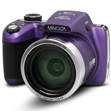 Minolta MN53Z 16MP FHD Digital Camera With 53x Optical Zoom, Wi-Fi, Purple Bundle With Shoulder Bag, Octopus Tripod, 16GB SD Card, Reader, Card Case, Cleaning Kit
