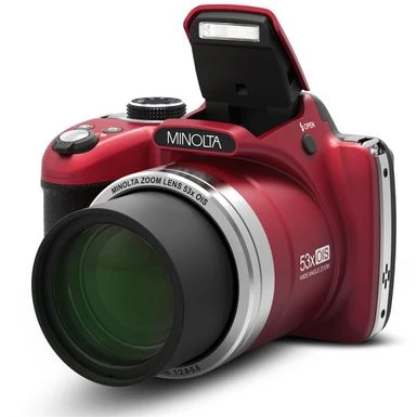 Minolta MN53Z 16MP FHD Digital Camera With 53x Optical Zoom, Wi-Fi, Red Bundle With Shoulder Bag, Octopus Tripod, 16GB SD Card, Reader, Card Case, Cleaning Kit