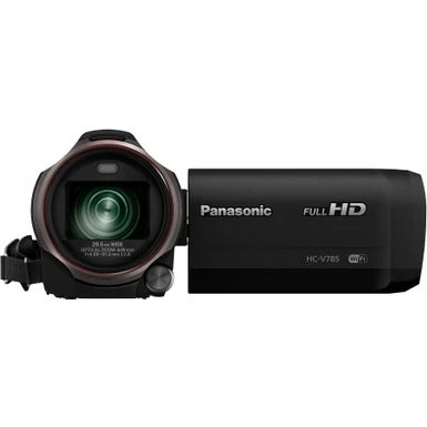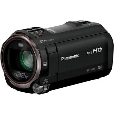 The V785 Full-HD Camcorder shoots bright, crisp images even in dim lighting, due to a 34% larger sensor (1/2.3-inch vs. standard 1/5.8-inch). To reduce hand shake, the AUTO O.I.S. Lock function automatically activates. Compact camera body includes 4-drive lens system and optical 20x zoom. Smooth slow motion video, multi manual dial settings, and a wind shield zoom microphone for high sound quality.