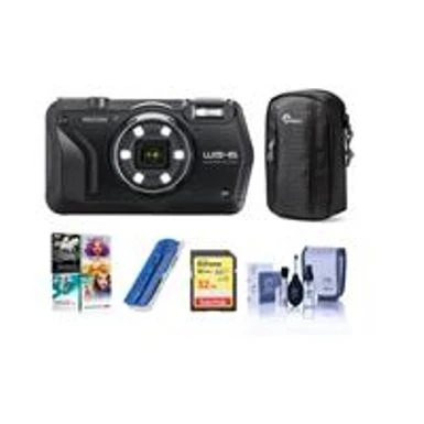 Ricoh WG-6 Digital Camera, Black – Bundle With Camera Case, 32GB SDHC Card, Cleaning Kit, Card Reader, PC Software Package