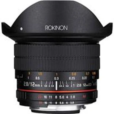 An ultra wide-angle fisheye lens with a 12mm focal length on full-frame cameras and a 18mm equivalency when used on APS-C format cameras. Its distorted perspective is useful for interiors, landscapes, group shots and many creative wide-angle applications. Extra low dispersion and aspherical lens elements reduce aberrations for sharp, color-accurate imaging. Nano crystal coating and ultra multi-coating on the lens elements improves light transmission and reduces ghosting and flare. Manual focus lens with an internal focus system and wide, rubberized focus ring. Manual aperture control with bright markings for aperture, distance and depth of field. Sturdy metal barrel with removable petal-shaped lens hood for additional protection.