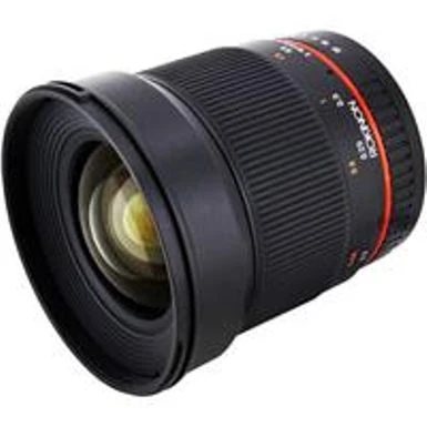 The Rokinon 16mm F/2.0 ED AS UMC CS Lens for Canon EF-S Mount is a manual focus wide-angle lens compatible with APS-C format DSLR digital cameras. It provides a 79.5deg. angle of view which translates into a 35mm format equivalency of 25.6mm. A fast maximum aperture of f/2.0 is effective in low light shooting and provides shallow depth of field. With two aspherical lens elements and one extra-low dispersion element, chromatic aberrations are minimized and sharp, color-accurate images are the result. UMC lens coating facilitates even light transmission and reduces ghosting and flares.