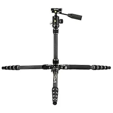 Vanguard VEO3T235CBP Carbon Fiber Travel Tripod with Ball Head, Removeable Pan Handle, and Quick Shoe with Built-in Smartphone Holder,Black